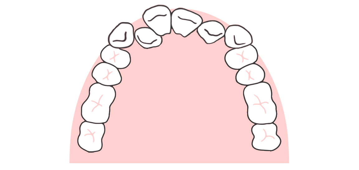 小顔であごが小さい方は、歯がきれいに並ぶスペースが足りません。狭いスペースに無理矢理歯を並べるため、互い違いに生えたり、外側に押し出されてしまうのです。