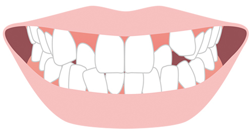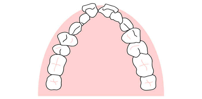 程度にもよりますが、不正咬合の中では最も「歯並びがガタガタしている」という印象のある症状です。