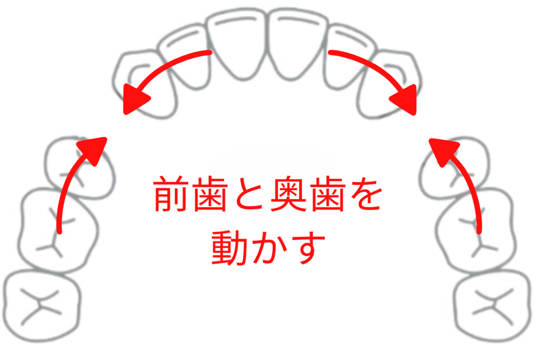 それにより空いたスペースに次の奥歯を動かし、さらに次の奥歯を動かします。