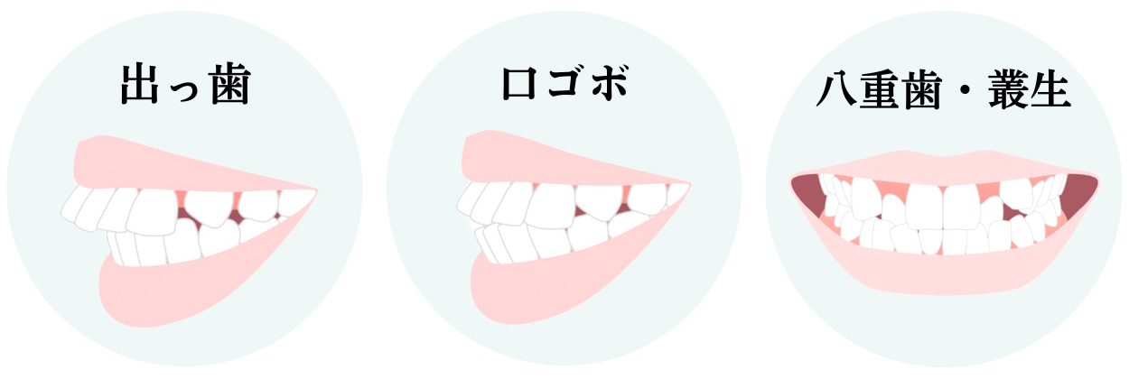 また多くの場合、八重歯だけでなく、叢生(ガタガタ)や出っ歯、口ゴボを併発しています。